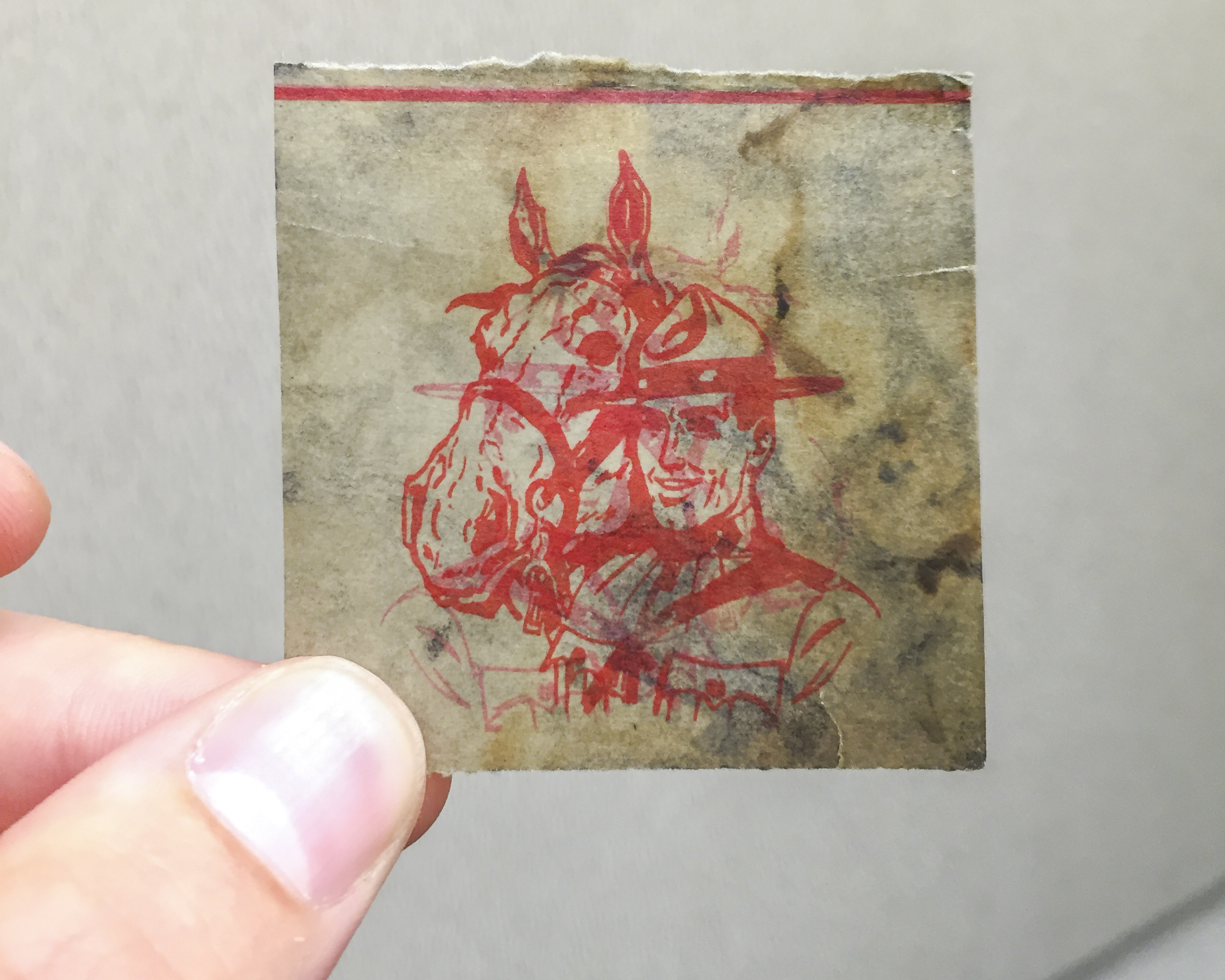 “I think the paper was normal card stock when it was actually printed. But, it had been sitting in oil for, I don’t know how many years, and the paper had kind of sucked up all of the oil and had become sort of translucent.”